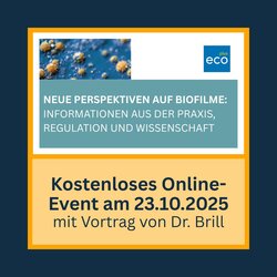 "Biofilmmanagement im regulatorischen Kontext – Welche Claims sind für Antibiofilmprodukte möglich" - das ist der Titel des Vortrags, den Dr. Florian Brill am 23. Oktober 2025 auf dem kostenlosen Online-Event "Neue Perspektiven auf Biofilme" halten wird. Zu diesem Oberthema bietet die Veranstaltung den Teilnehmern Informationen aus der Praxis, Regulation und Wissenschaft. Alle Details zu den weiteren Vorträgen und für Ihre Registrierung finden Sie unter folgendem Link: HIER. Über Ihre Anmeldung würden wir uns freuen!